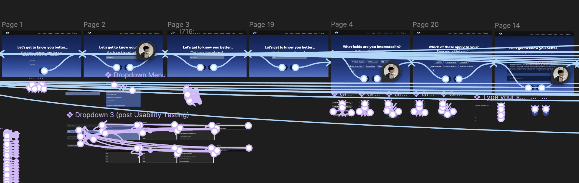 To ensure the experience was still presentable, I took the initiative to fully prototype the interface in Figma. In the process, I deepened my understanding of key interactive elements- such as radio button logic for user selections, hover states to create clear feedback on clickable elements, and even typing animations to simulate the dynamic feel of filling out information in real time.
