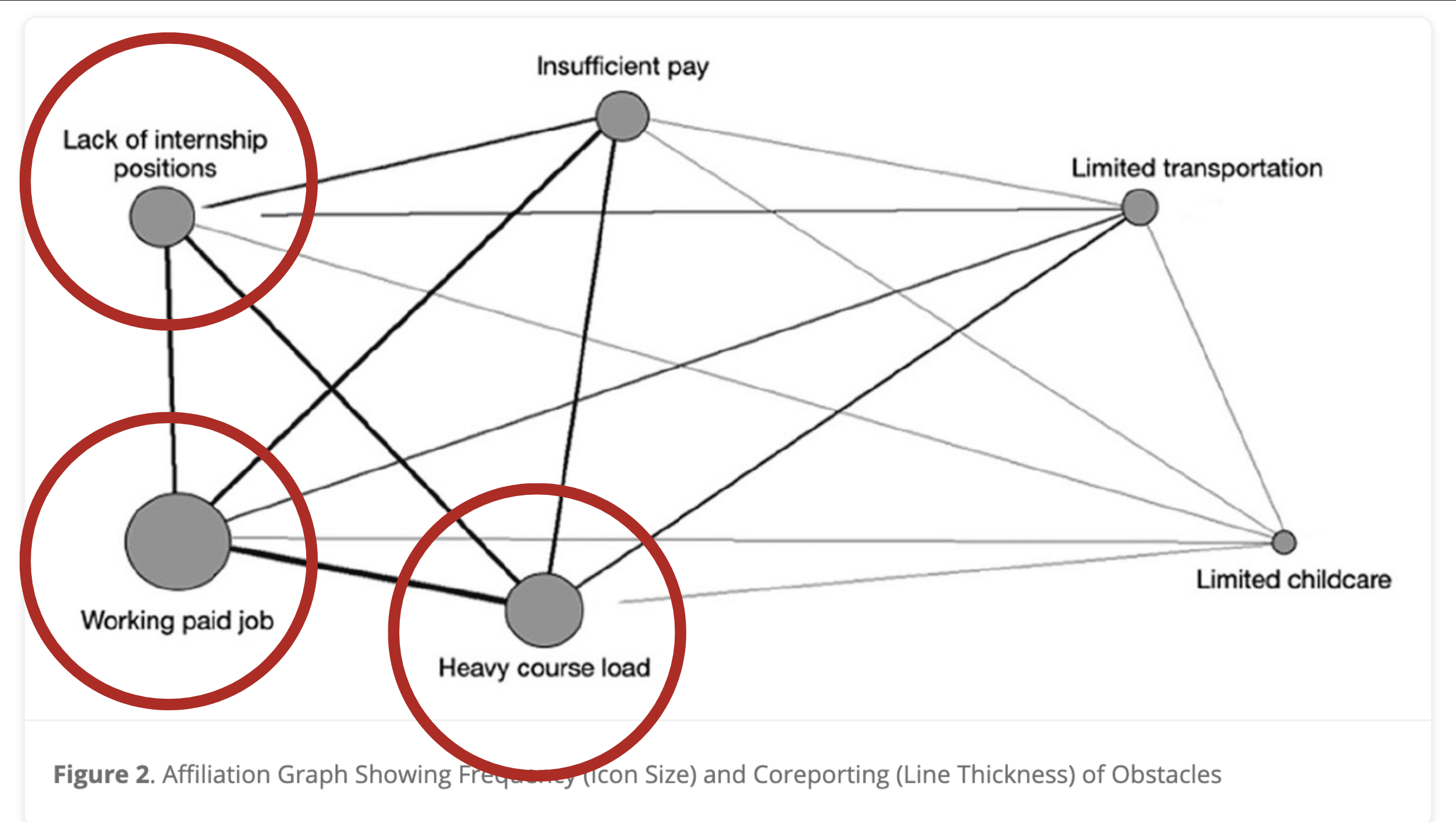 To validate our observations, we drew on Drawing on Closing the Doors of Opportunity (Hora et al., 2022), we found our members faced similar barriers: limited internship availability, heavy course loads, and the need to work paid jobs.